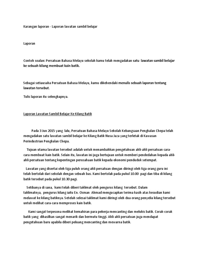 Karangan Laporan Lawatan Sambil Belajar Dan Berita Pdf